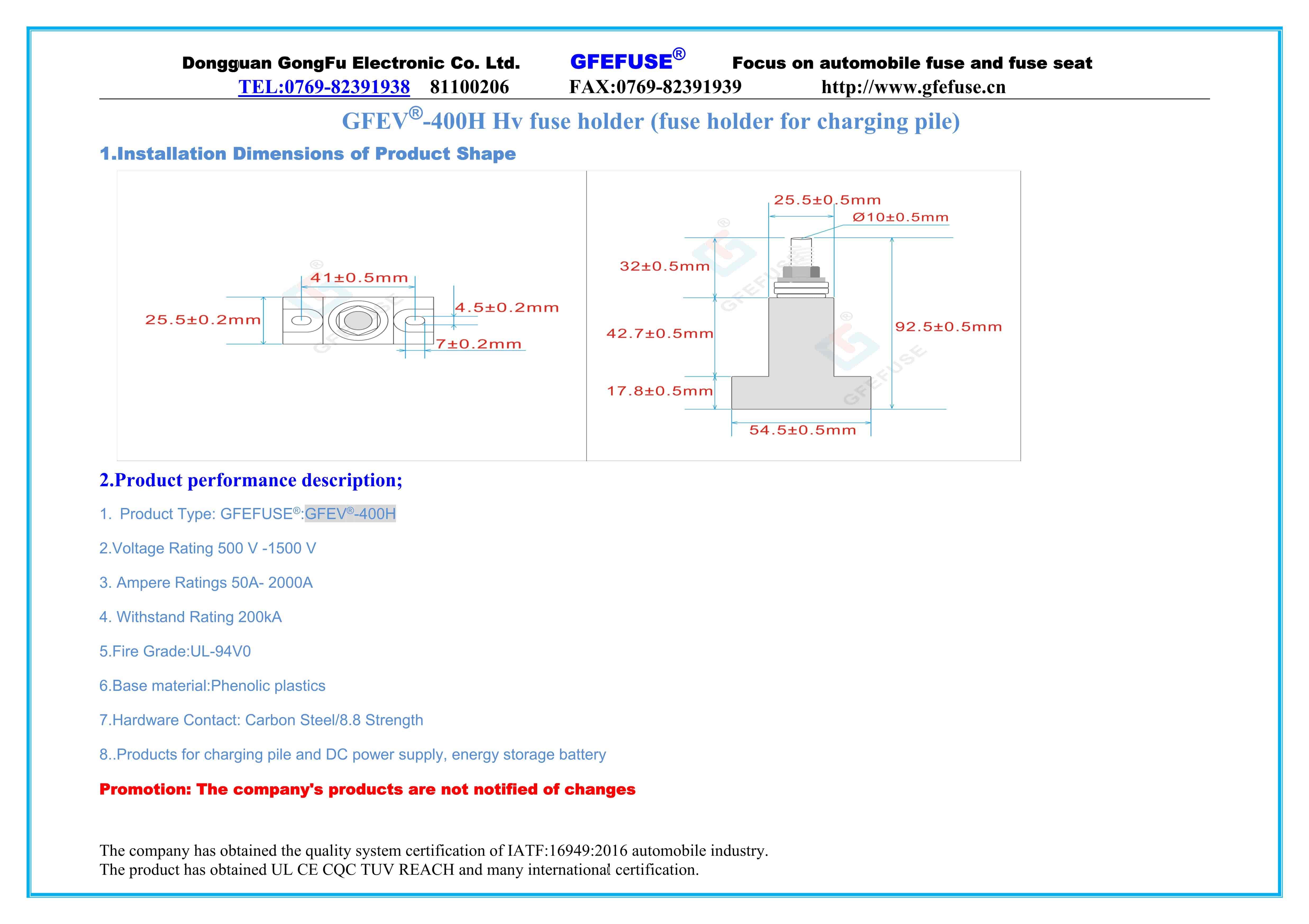 東莞市貢福電子有限公司專業(yè)制造銷售太陽(yáng)能光伏熔斷器、新能源車用保險(xiǎn)絲、微型保險(xiǎn)絲、叉栓保險(xiǎn)絲、汽車保險(xiǎn)絲、高壓保險(xiǎn)絲、貼片保險(xiǎn)絲、陶瓷保險(xiǎn)絲、汽車保險(xiǎn)絲座、汽車熔斷器、突跳式溫控器、汽車過(guò)載保護(hù)器,保險(xiǎn)絲座,汽車插片保險(xiǎn)絲。插片保險(xiǎn)絲座,叉栓保險(xiǎn)絲座,叉栓保險(xiǎn)絲盒,螺栓保險(xiǎn)絲,螺栓保險(xiǎn)絲座,低壓熔斷器.直流熔斷器,直流保險(xiǎn)絲,車用保險(xiǎn)絲,車用保險(xiǎn)絲座等。產(chǎn)品通過(guò)UL CE CQC TUV REACH等認(rèn)證。客戶遍布廣東、江蘇、東莞、上海等全國(guó)各地。