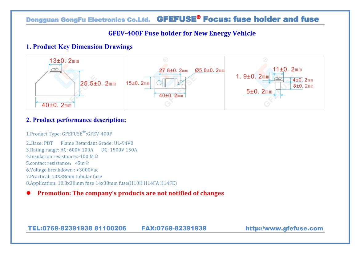 東莞市貢福電子有限公司專業(yè)制造銷售太陽能光伏熔斷器、新能源車用保險絲、微型保險絲、叉栓保險絲、汽車保險絲、高壓保險絲、貼片保險絲、陶瓷保險絲、汽車保險絲座、汽車熔斷器、突跳式溫控器、汽車過載保護器,保險絲座,汽車插片保險絲。插片保險絲座,叉栓保險絲座,叉栓保險絲盒,螺栓保險絲,螺栓保險絲座,低壓熔斷器.直流熔斷器,直流保險絲,車用保險絲,車用保險絲座等。產(chǎn)品通過UL CE CQC TUV REACH等認證??蛻舯椴紡V東、江蘇、東莞、上海等全國各地。