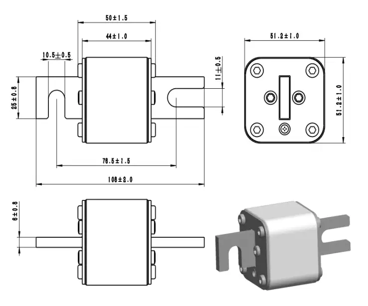Part No. Fuse Amps Size Average @50KA/250Vdc Power Loss (W)