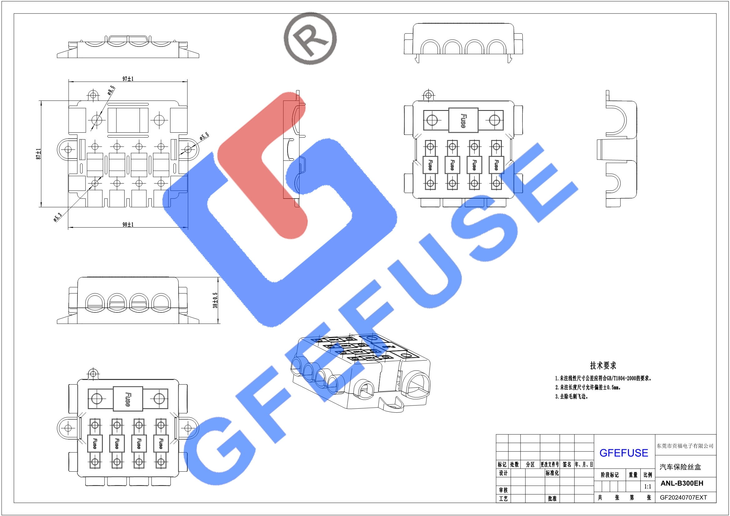 ANL-B300EH叉栓(螺栓)汽車(chē)保險(xiǎn)絲座(盒)
